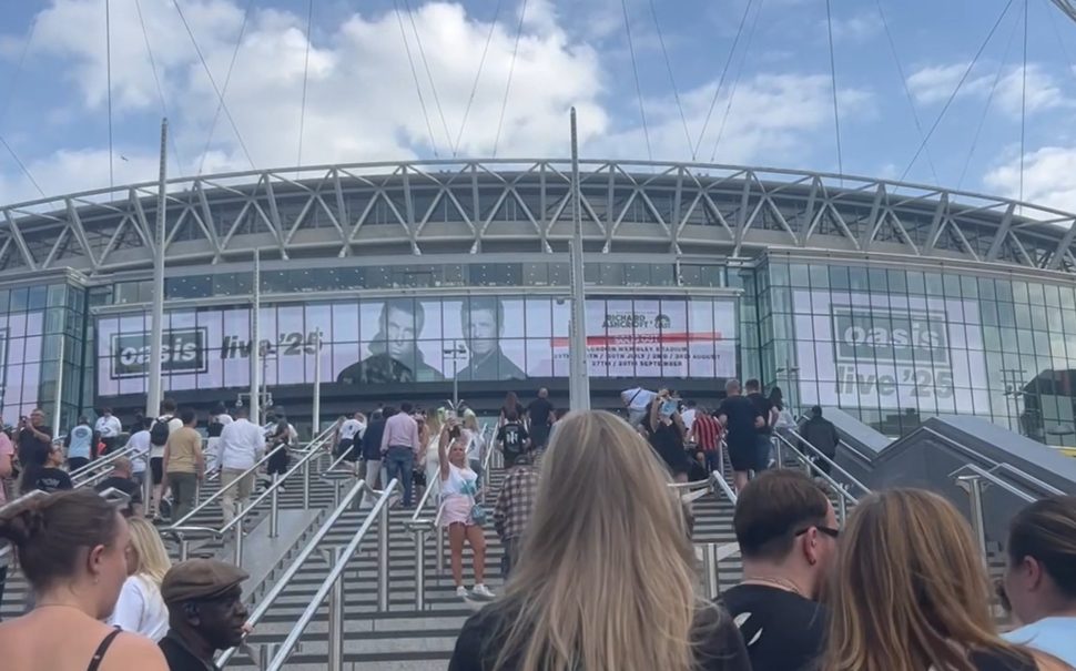 Unlucky fans gathered outside of Wembley Stadium trying to listen to the first Oasis gig in London since the band reunited for an exclusive tour this year.