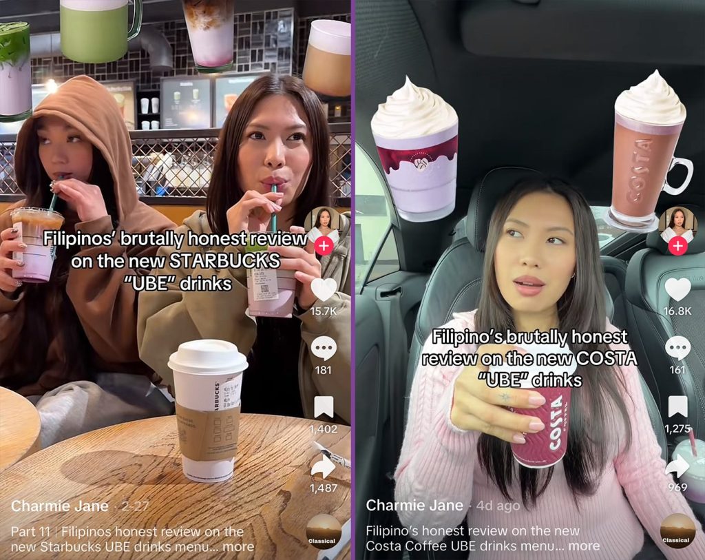 Charmie Jane, a UK-based Filipino influencer, reviewed both Starbucks’ and Costa’s line of ube drinks and expressed her disappointment.