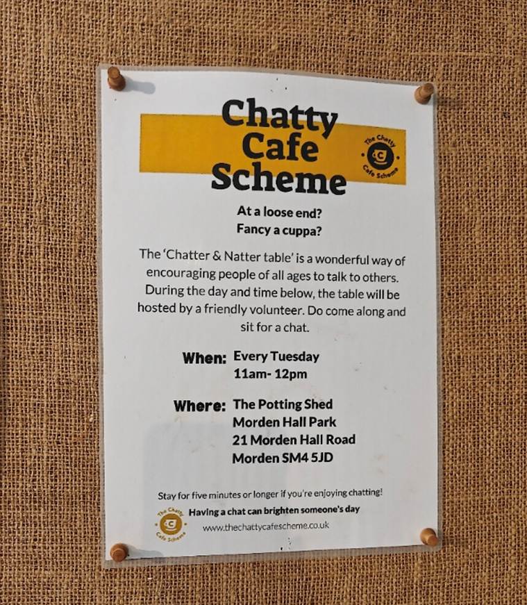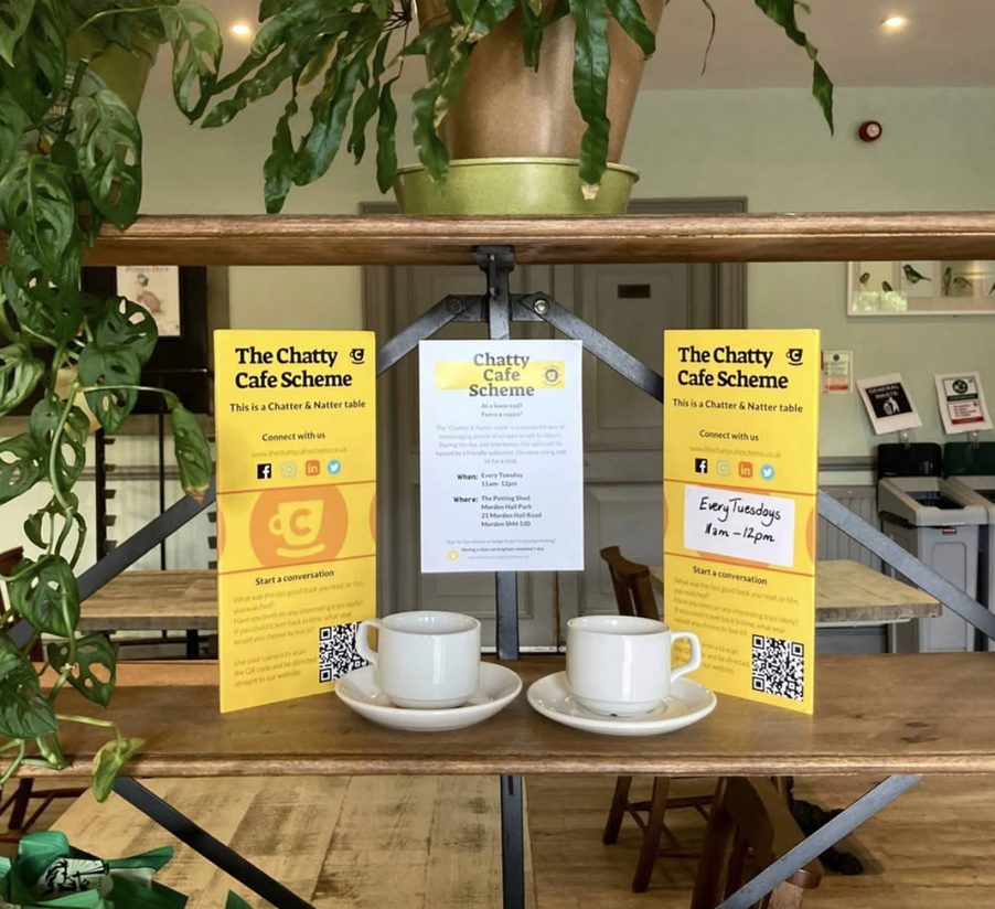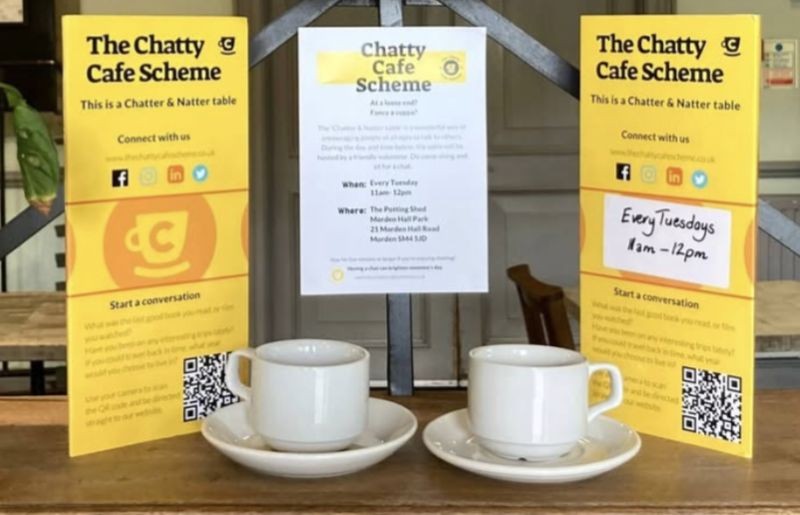 The Chatty Cafe Scheme, which operates in hundreds of UK venues, has proved a hit in Morden amid reports nearly 10% of Londoners experience severe loneliness.