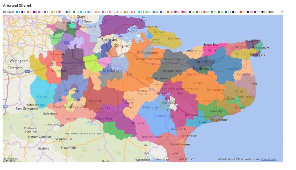 Meanwhile, families in areas like Thanet or Sheerness may only realistically access one or none.