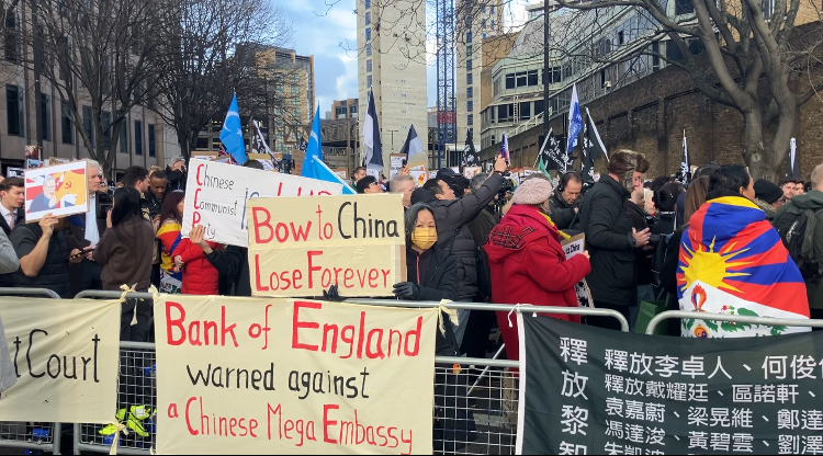 Speakers at the protest on Saturday warned China could use the embassy as a platform for repression. Many in the crowd were members of the Chinese, Uyghur or Tibetan diaspora, or exiled Hong Kongers.