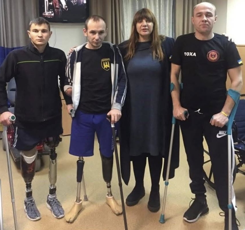 Wounded Ukrainian soliders receiving crutches in Zaporizhzhia | Image credit: Olena Maherovska