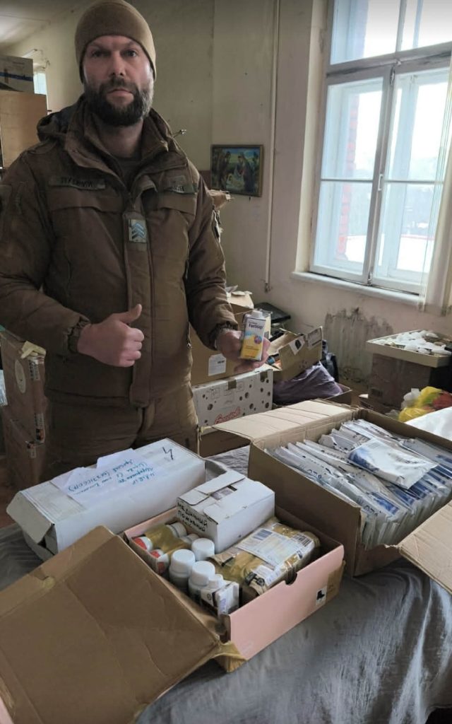 Ukrainian soldier receiving medical supplies | Image credit: Olena Maherovska