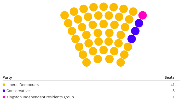 The 2022 election saw the Liberal Democrats hold control with 41 seats, five more than the previous election.