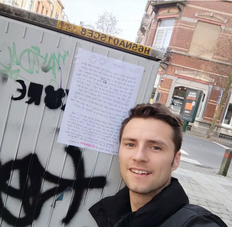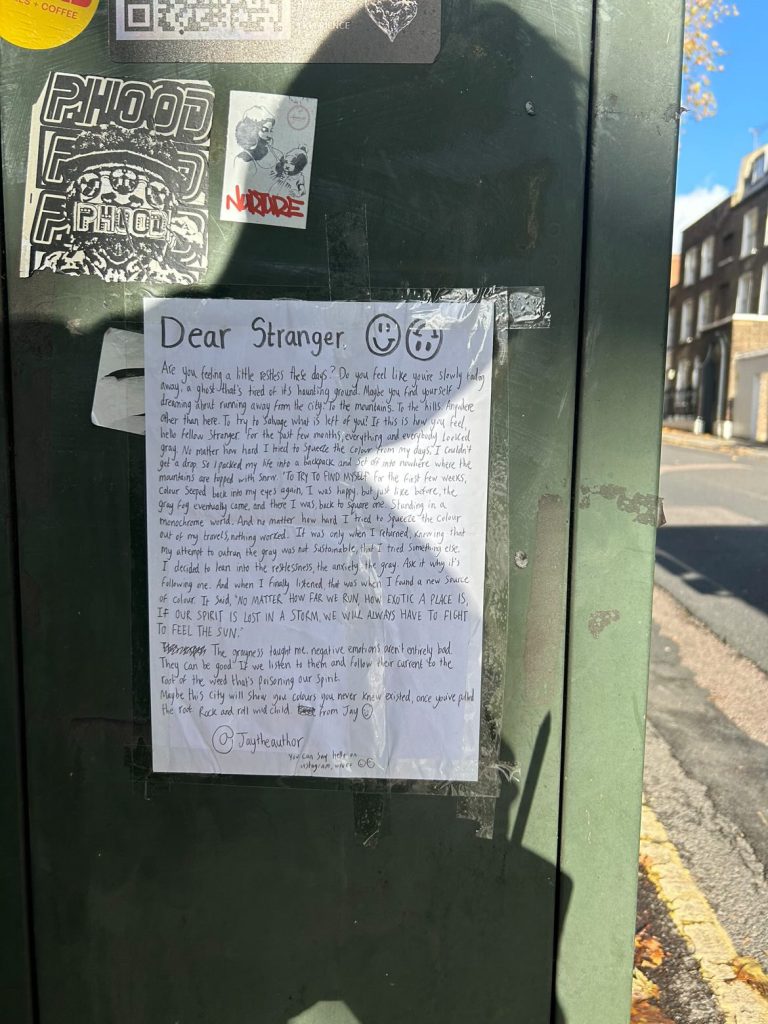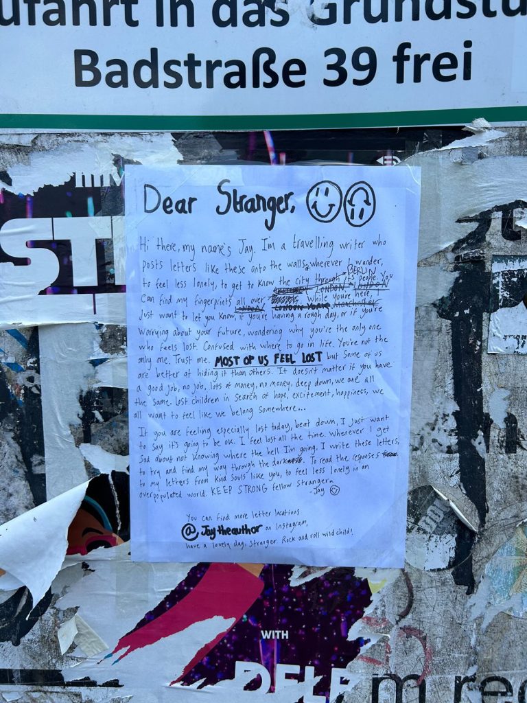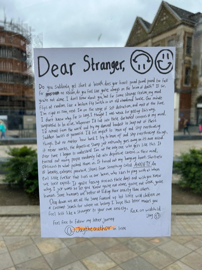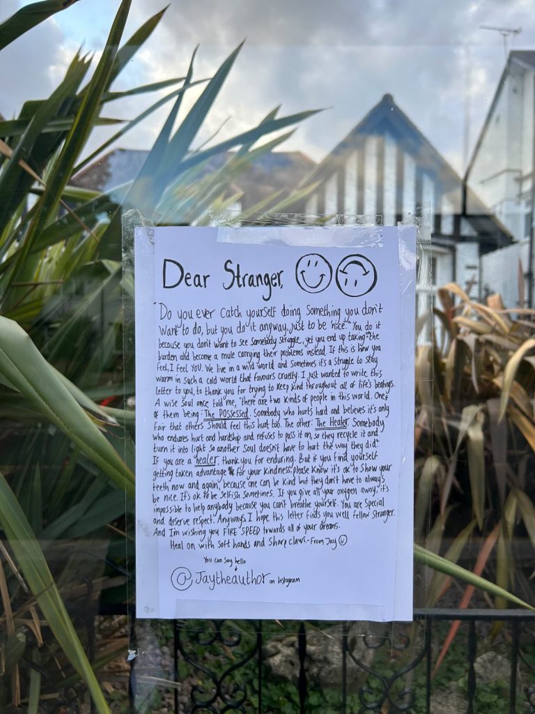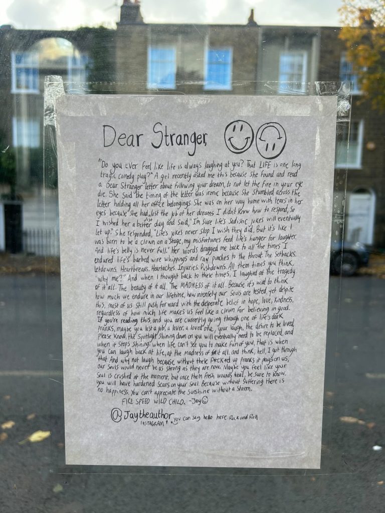At its top, an intriguing opening: ‘Dear Stranger’, accompanied by two smiley faces.