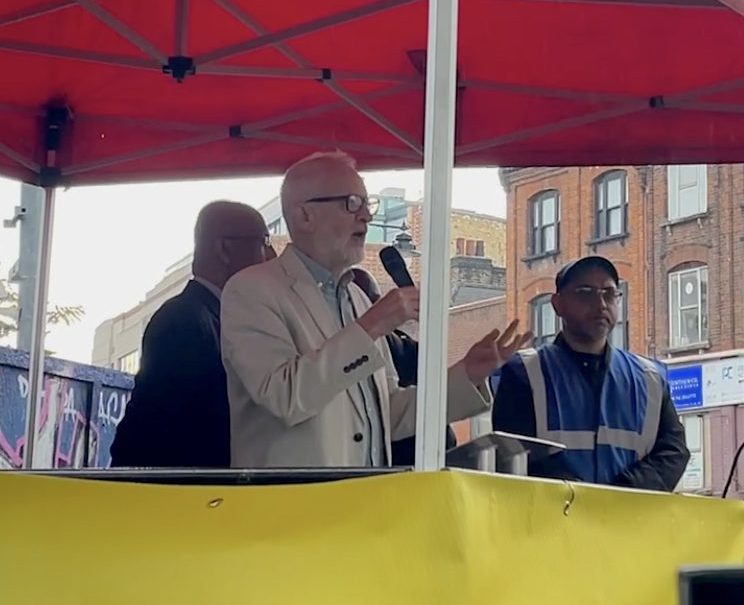 Former Labour leader Jeremy Corbyn joined the Tower Hamlets Unity Demo in Whitechapel, calling the event ‘historic’ after the Met Police blocked a planned UKIP rally in the borough.