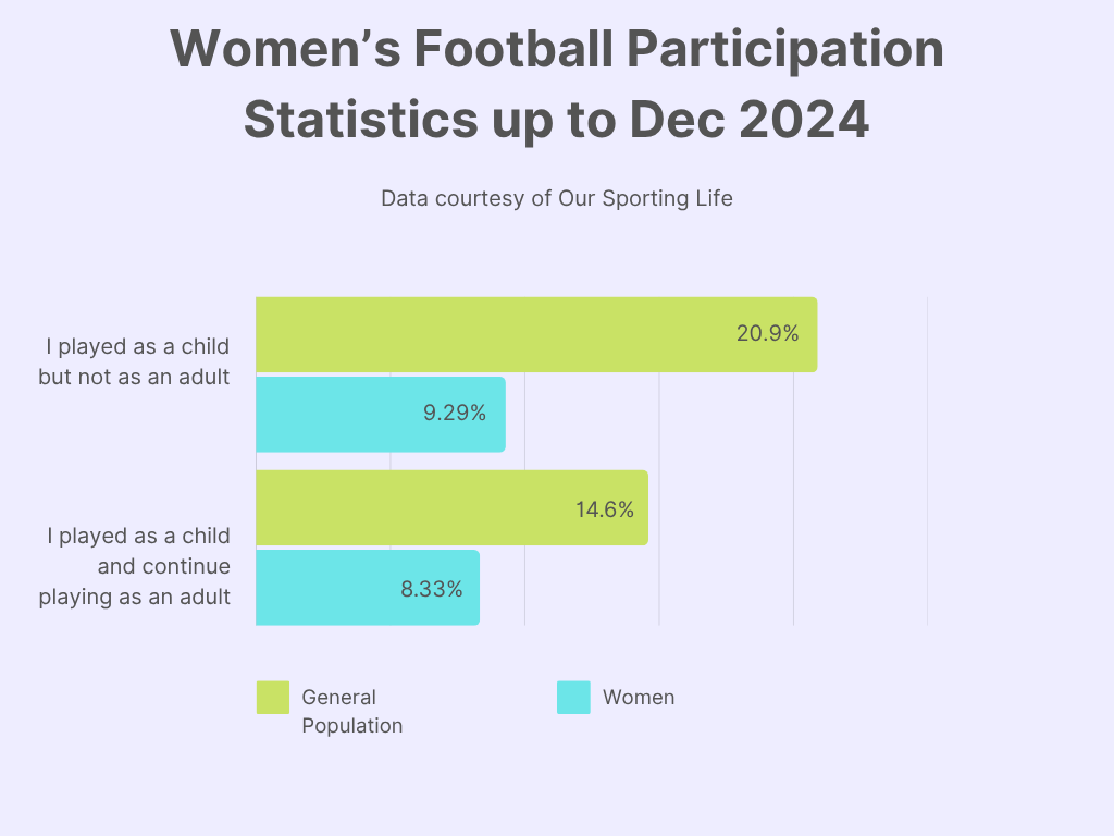 On top of this, Our Sporting Life, a prominent grassroots sports magazine, reported last year that just 8.33% of women who played in childhood continue to do so as adults, compared to 14.6% of the general population.